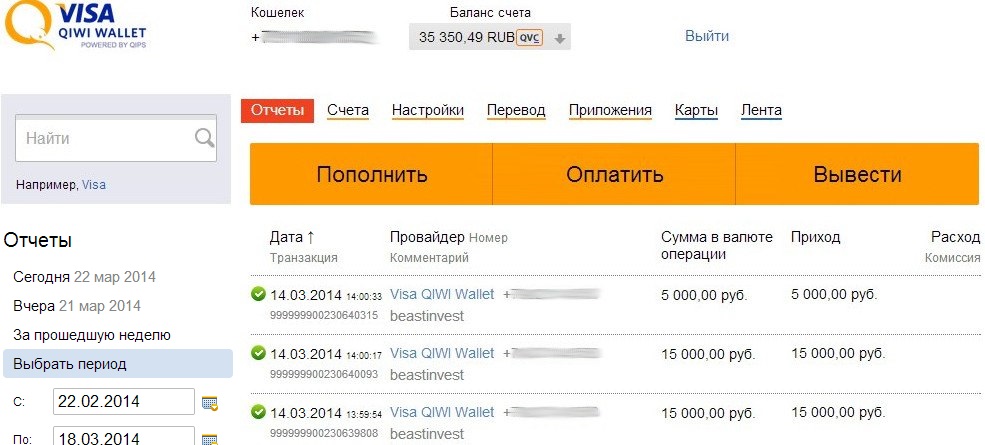 03.21.14 18:04 Account Receive +53.68 Received Payment 53.68 USD from account U5654457 to account U*******. Batch: 52077551. Memo: beastinvest Не забывайте оставлять отзывы о нашем проекте http://vk.com/topic-50708064_29436790